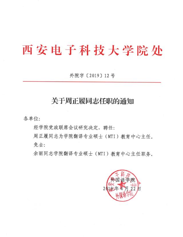关于周正履同志任职的通知