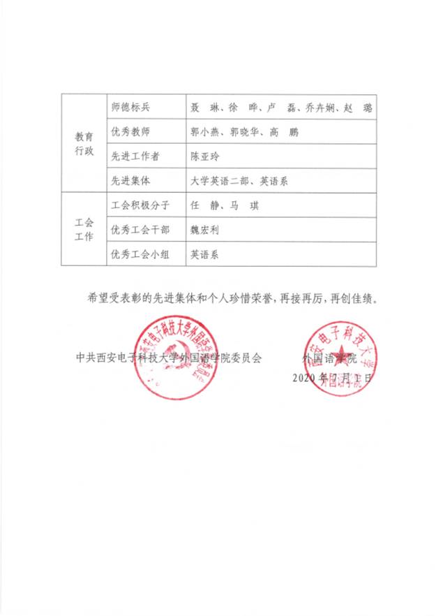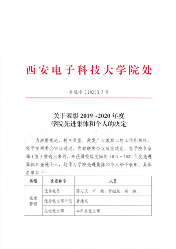 关于表彰2019-2020年度学院先进集体和个人的决定