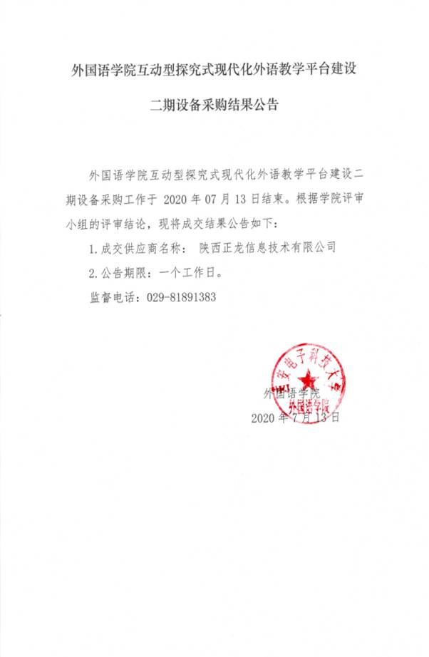 永利集团304互动探究式现代化外语教学平台建设二期设备采购结果公告
