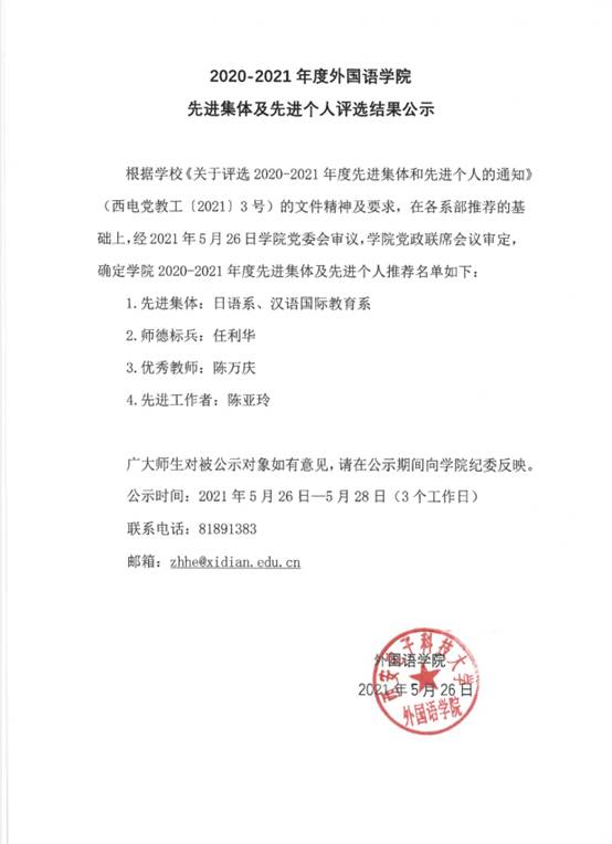 2020-2021年永利集团304先进集体及先进个人评选结果公示