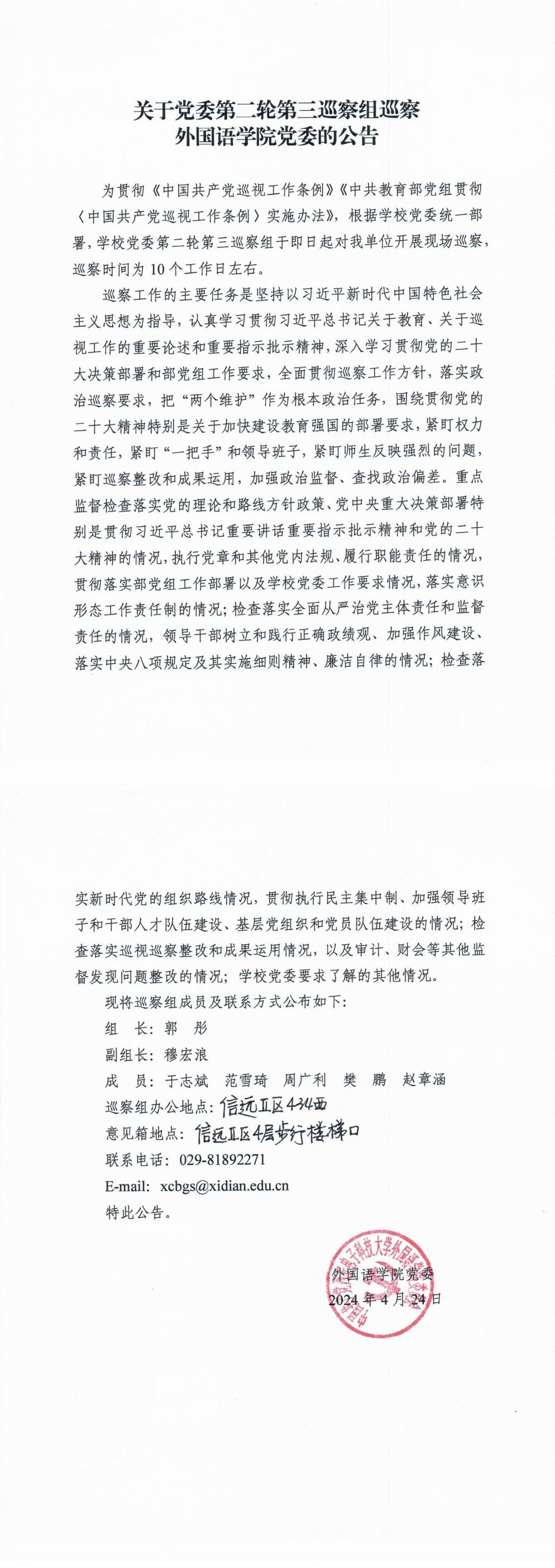 关于校党委第二轮第三巡察组巡察永利集团304党委的公告