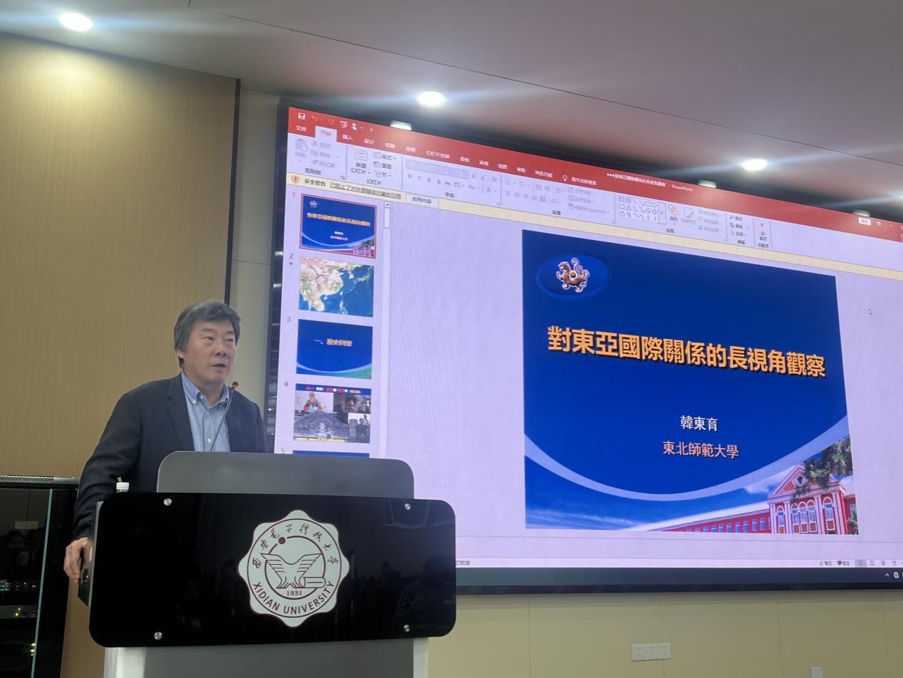 讲座中,韩东育教授运用丰富的历史图文资料,以生动翔实的案例和幽默风趣的语言,系统梳理了中日韩三国国际关系的演进历程,深入解析了东亚区域秩序的变迁脉络。在互动环节,他耐心解答师生提问,从历史经验出发分析当前东亚国际关系态势,并勉励青年学子要广泛阅读历史著作,拓宽国际视野,夯实专业基础。