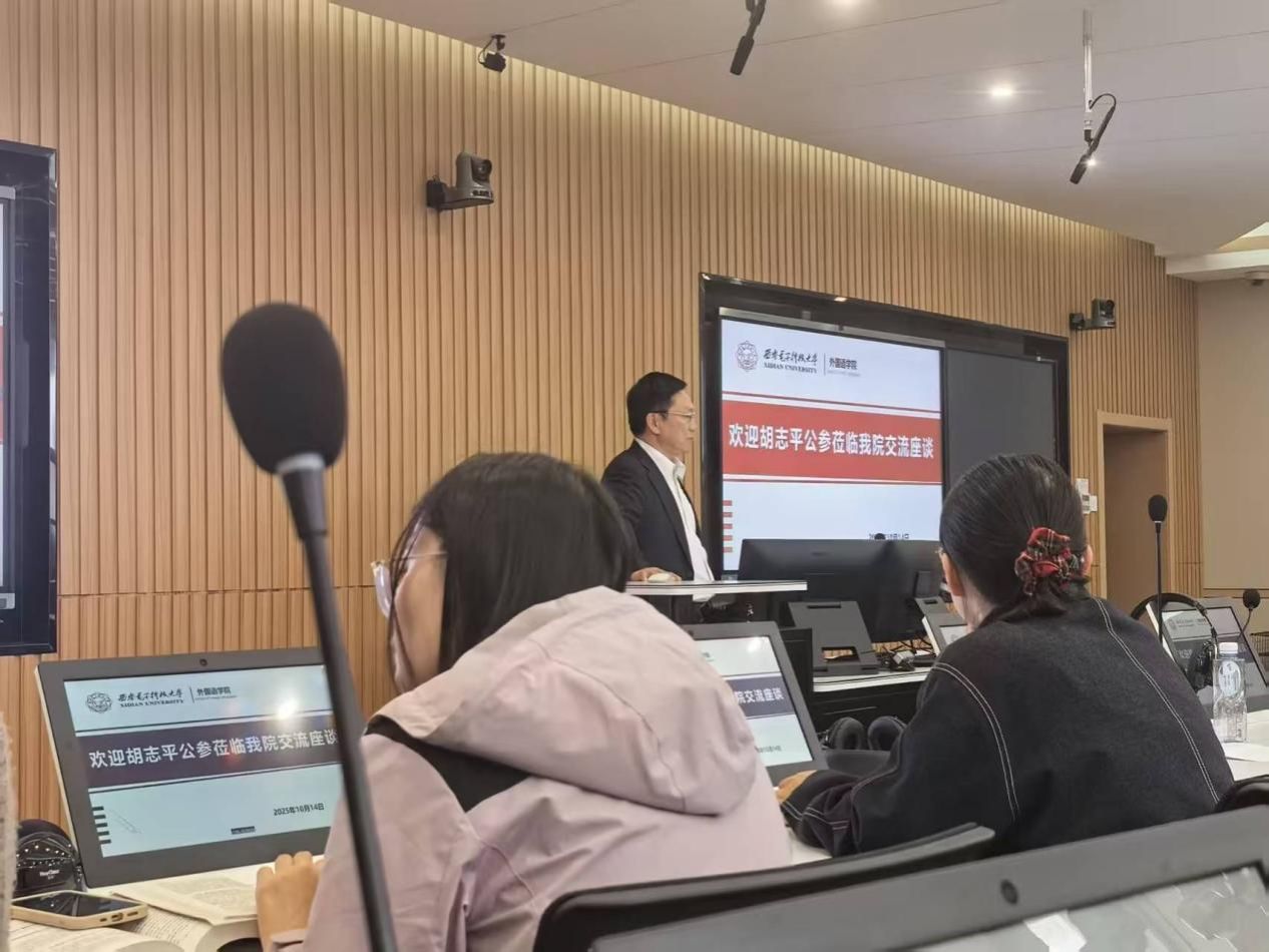 (通讯员:邓罗诗)2025年10月14日下午,由永利集团304主办的“中日关系的历史、现状与未来”主题座谈会在信远楼Ⅱ502会议室顺利举行。讲座特邀教育部中外语言交流合作中心原副主任、中国驻日本使馆原公使衔参赞胡志平先生担任主讲,永利集团304执行院长陈会林主持,学院党委书记徐战利及学院师生共同参与。