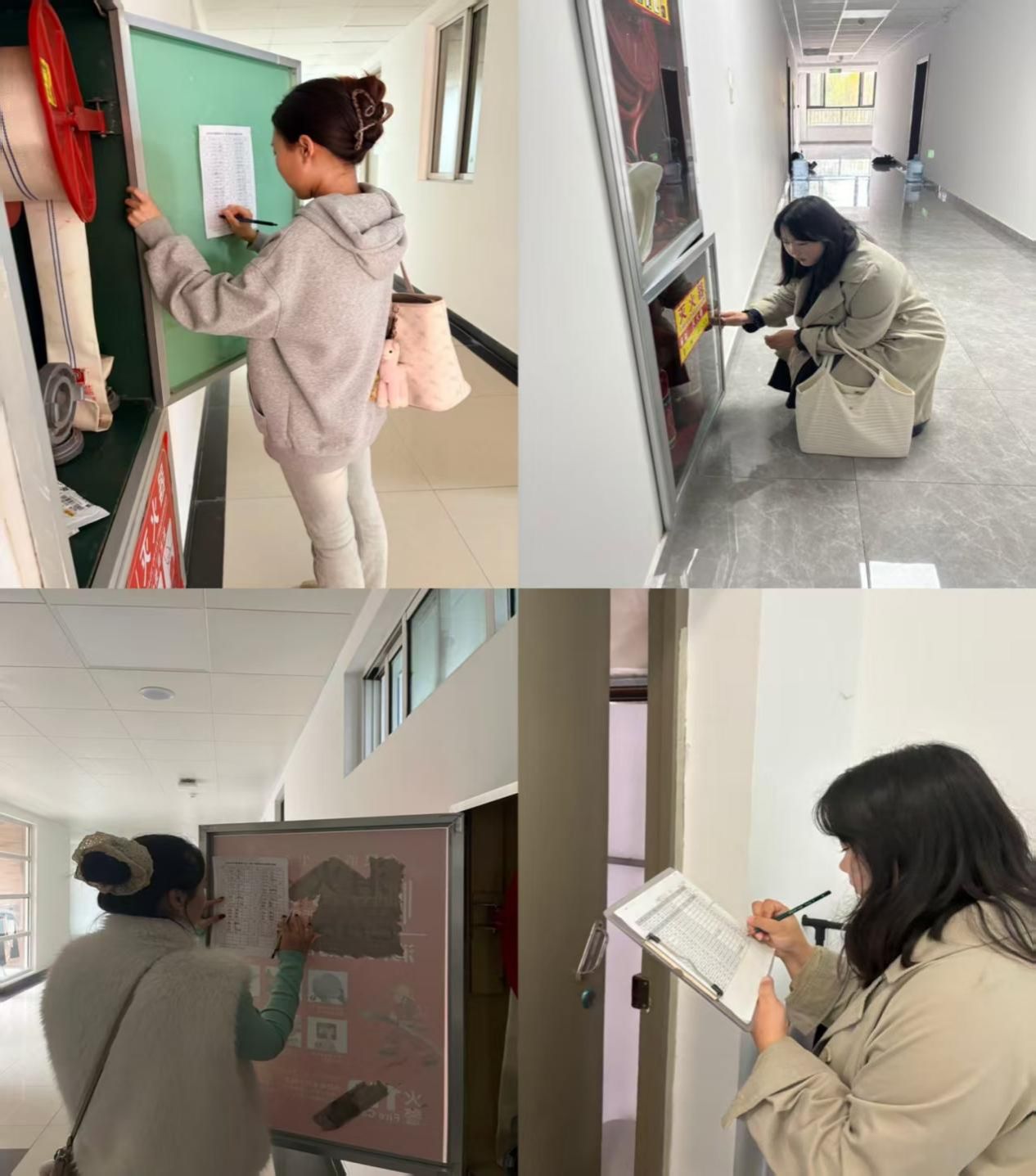 在消防安全检查岗位上,25级同学王佳琪协助宿管阿姨仔细检查了竹园1号楼五、六楼层的灭火器。“压力表指针是否在绿色区域?保险栓能否正常拔取?”她严谨记录每个细节后表示:“消防安全无小事,看似简单的检查工作背后是守护整栋楼宇安全的重任。”