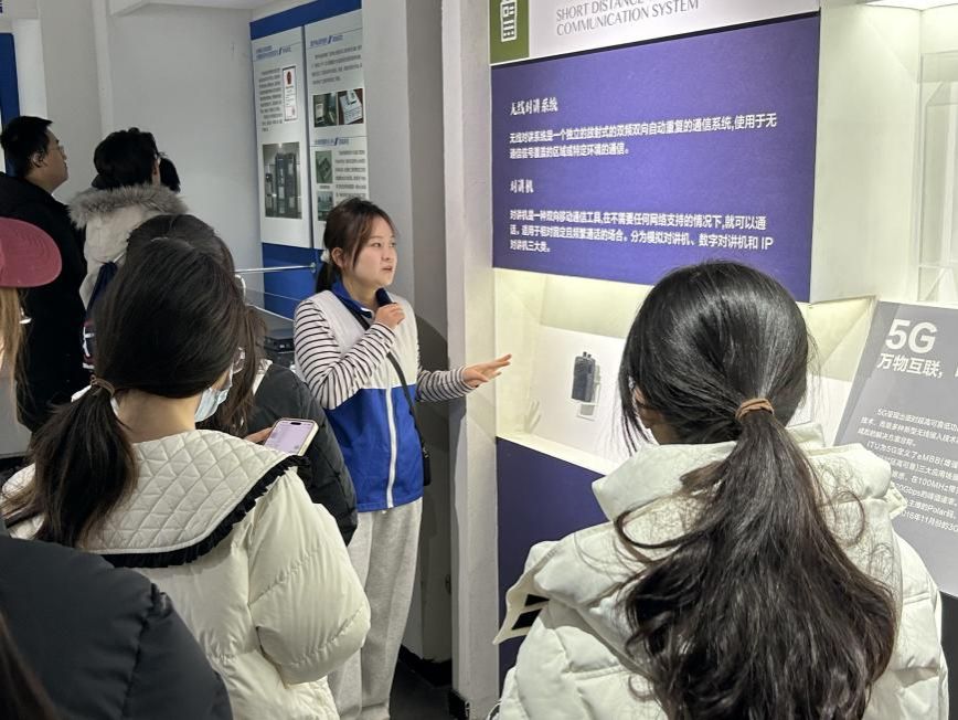 在通信厅,从早期电报设备到卫星通信系统的展品序列,清晰展现了西电在通信技术革新中的核心作用;雷达厅的信号处理机、显示终端等设备,让新生们直观感受科技的硬核力量与国防价值。各展区讲解员的专业阐释,进一步加深了新生对学校学科优势、科研实力的认知,激发了他们对电子信息领域前沿发展的探究热情。