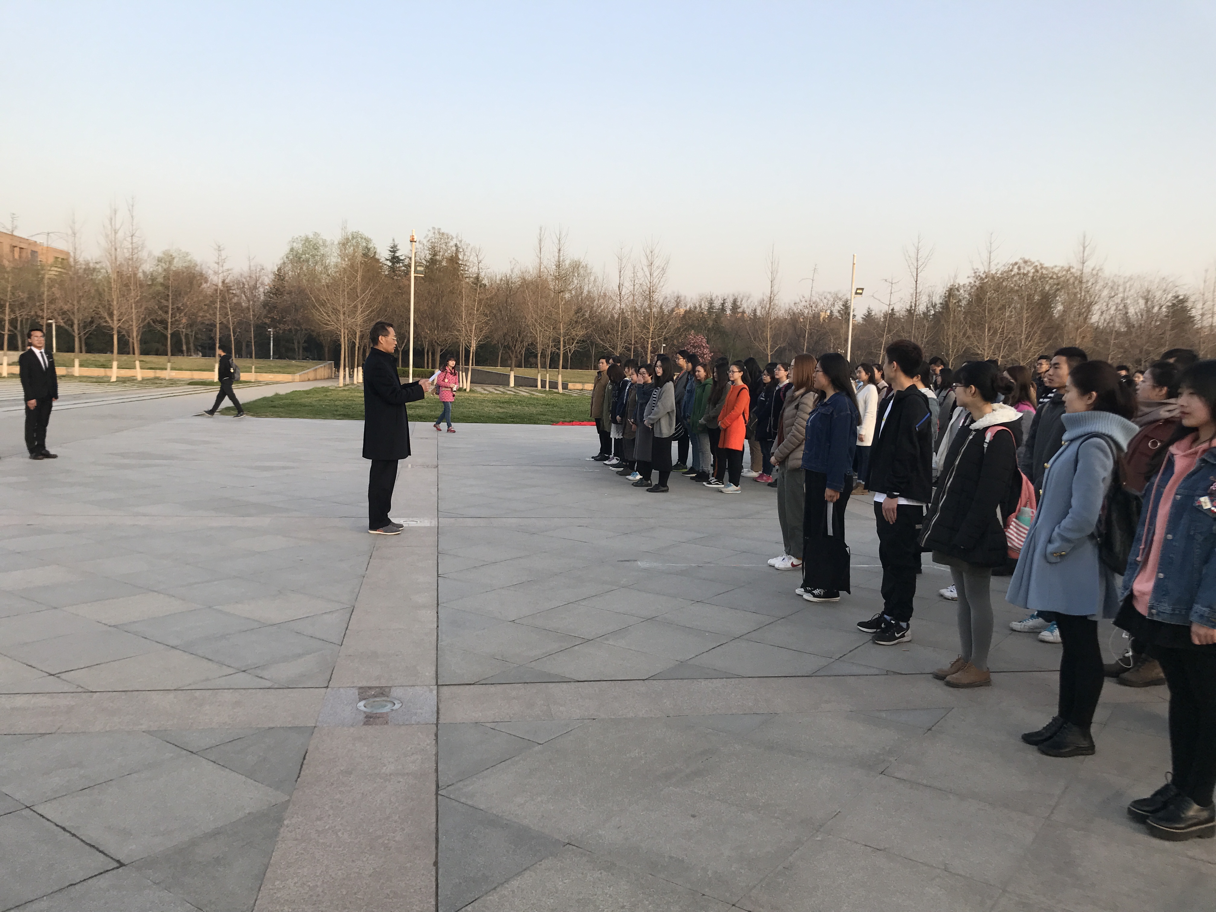 之后,学院党委书记陈峰发表讲话,他说,同学们都是95后,生在一个繁荣、富强的新时代,但是我们仍然不能忘记历史与国耻,仍然有很长的路要走。面对当今复杂的国际形势,面对祖国高级人才的缺失现状,同学们必须加倍努力学习,完善自我,努力成长为共和国新时代的脊梁。
