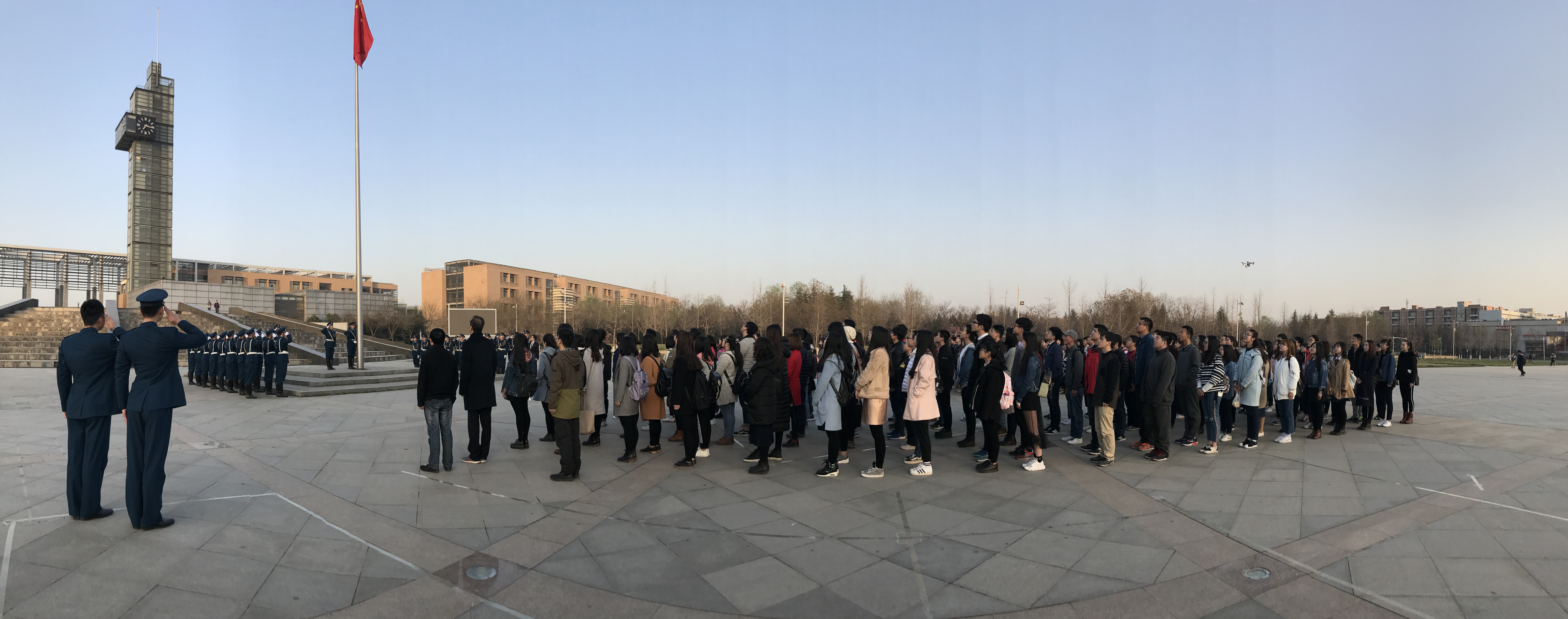 仪式最后,同学们共同合影留念,用无人机拍下巨大的“外院”人形方阵。此次升旗仪式强有力地激发了大家的进取之心,是一次成功的爱国主义教育。同学们纷纷表示要用十倍的精神投入学习生活,更要用行动来证明自己作为新时代大学生的力量与决心,为祖国、为母校交上一份满意的答卷!