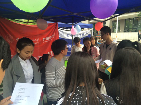 本次活动外院在“了解自我,接纳自我”的主题下设计了三个环节:心理健康宣传,心理健康测试及趣味游戏挑战。我们通过十个印着关于心理健康知识的展板进行心理健康宣传,现场同学负责讲解。外院结合自身特色,在心理健康测试和趣味游戏环节开展了英语猜谜语,英语数字转换等活动。此外,心理健康测试,近距离叼饼干环节也收获了较高人气。