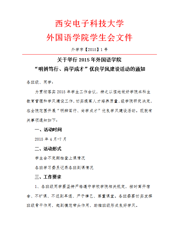 关于举行2015年永利集团304“明辨笃行、尚学成仁”优良学风建设活动的通知
