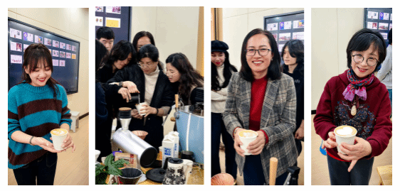 “以前总觉得手冲咖啡是‘专业人士的事’,今天跟着苏老师一步步操作,才发现原来自己也能冲出这么香醇的咖啡!” 英语系教师李老师举着刚冲泡好的咖啡笑着说,她还特意用手机记录下研磨、注水的关键步骤,“以后备课累了,就能给自己冲一杯,既解乏又有仪式感。” 机关办公室的贺老师则对咖啡文化分享印象深刻:“没想到一杯咖啡背后有这么多历史故事,苏老师讲埃塞俄比亚咖啡起源的时候,我还联想到了与留学生畅谈了解到的跨文化交际知识,感觉这次活动既放松又长见识。” 参与活动的青年教师们也表示,平时和同事交流多围绕工作,这次在咖啡制作和品鉴的互动中,大家聊得更轻松,“工会组织这样的活动特别好,既丰富了我们的业余生活,也拉近了同事间的距离。”