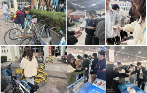 同学们化身餐厅“美好食光引导员 ”,在烟火气中解锁别样的劳动体验。发餐券时,同学们高效、耐心,让每一张 1 元餐券都发放至需要的人手中;维持秩序时,用柔性沟通化解拥挤摩擦,让饭点的食堂始终井然有序;整理自行车时,弯腰扶正、规范排列,用双手为校园添一份规整之美。这场看似琐碎的实践,让同学们跳出了书本象牙塔,真切触摸到校园运转的细微肌理。