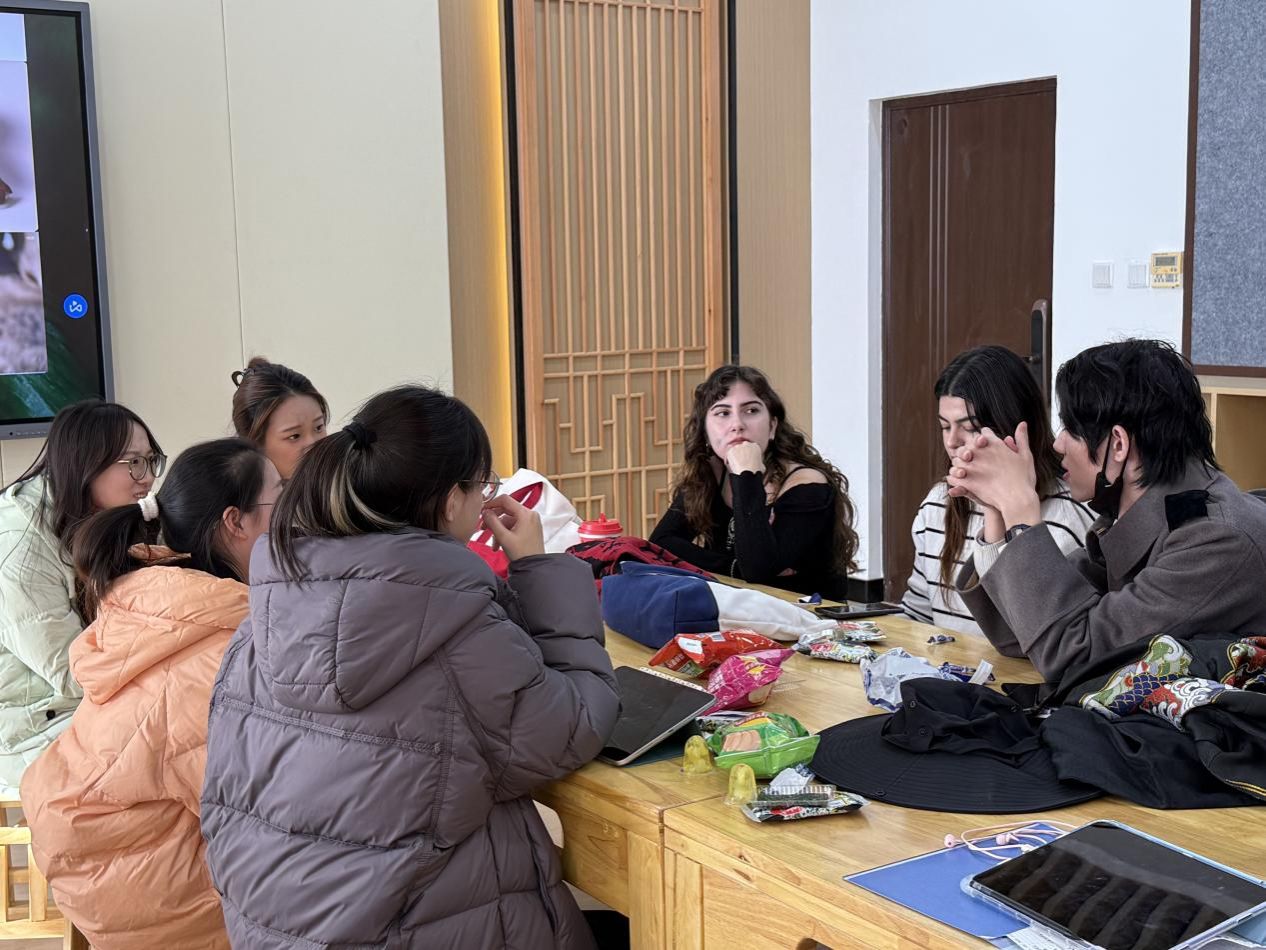 展示环节结束后,自由讨论环节迅速升温。同学们围绕“民族服饰与地域环境的关联”“各国服饰礼仪的差异”等话题展开热烈探讨。意大利传统服饰的刺绣工艺与中国苏绣有何共通之处?汉服的形制传承与土库曼民族服饰的工艺延续有哪些不同思路?大家踊跃发言,中外语言交替,在思想的碰撞中加深了对不同民族文化的理解,现场不时响起阵阵掌声与欢声笑语。
