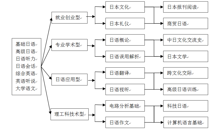 就业创新型:商贸日语、科技日语、电路分析基础、计算机语言基础、跨文化交际