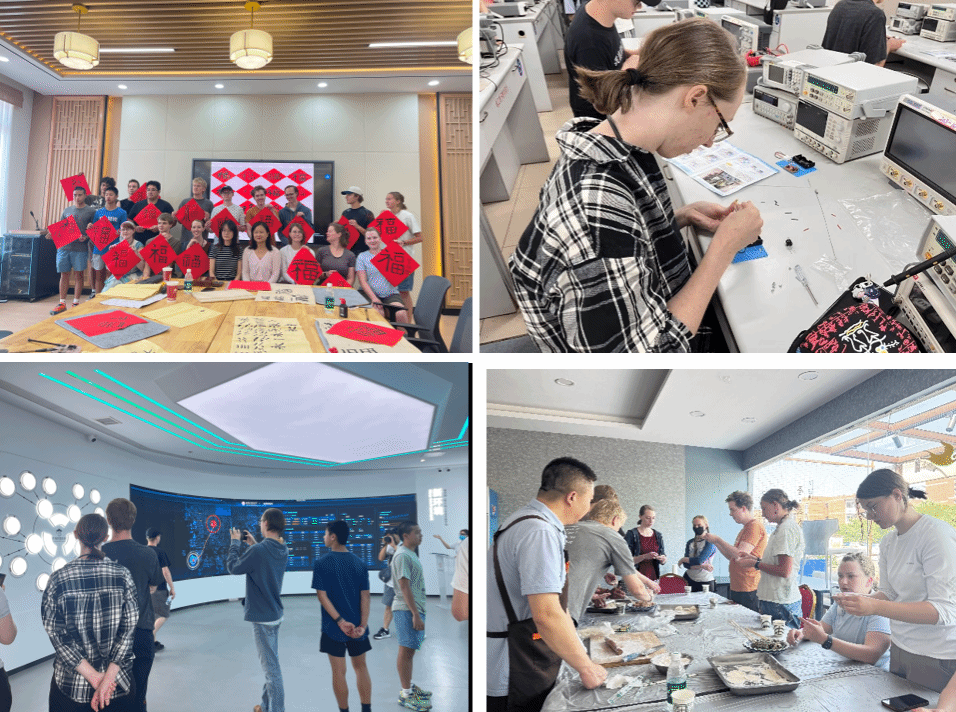 在参与电子通信主题讲座时,西电教师生动讲解了中国通信历史与发展历程,从古老的驿站传信到现代的5G通信,展现出通信技术的跨越变迁。同学们还动手制作了简易发报机,在实践中感受通信技术的魅力,深入了解西电特色,搭建起学术交流的桥梁。而在两日的自由活动中,两校学生围绕语言教育、文化差异、学术经历等主题畅所欲言,从美式幽默与中式含蓄的表达差异聊到不同教育体系下的学习方法,言语间满是对彼此文化的好奇与欣赏。
