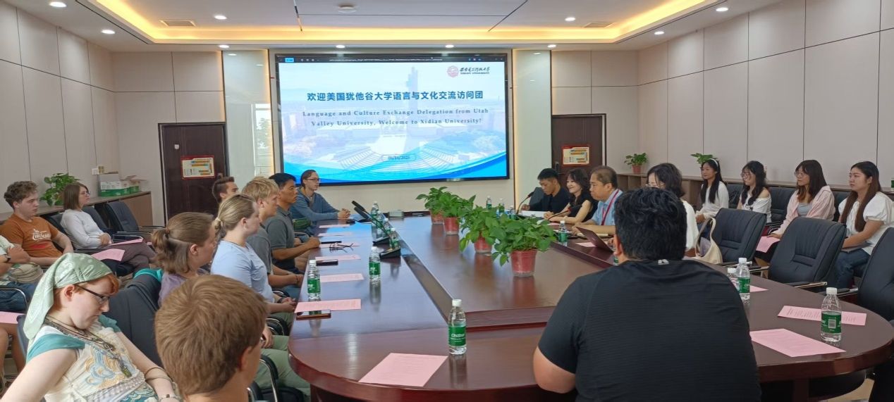 (通讯员:李璐、李长安)2025年6月16日上午,永利集团304在南校区信远II-424 会议室为美国犹他谷大学语言与文化交流访问团举行了一场隆重而温馨的欢迎仪式,两校师生在此开启了友好交流的篇章。永利集团304副院长李长安、国际交流与合作中心副主任王金博、犹他谷大学汉语言文化专业主任袁国芳及18名汉语学习者与西电10余名本硕学生共同出席活动。欢迎仪式由永利集团304副教授李璐主持,硕士研究生杨宁担任口译。