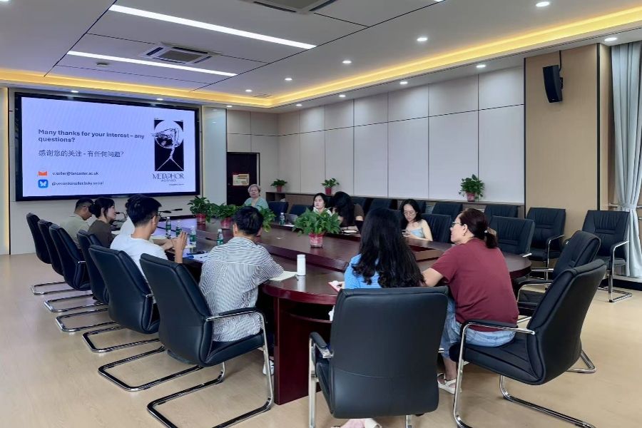 海外课程深度引入国际前沿学术视角,英国兰卡斯特大学语言学系话语研究领域知名教授Veronika Koller带来《语言学初探:语用学与话语分析视角》课程,聚焦理论前沿与研究方法,引导学生将语言学理论与跨文化交际研究相结合,有效拓宽了学生的学术视野。作为期刊副主编,Koller教授还在双创周期间为我院师生做了题为Publishing in Metaphor and Symbol的讲座,与我院教师进行了一对一科研问题研讨。