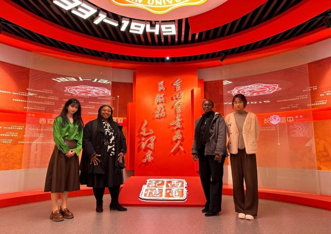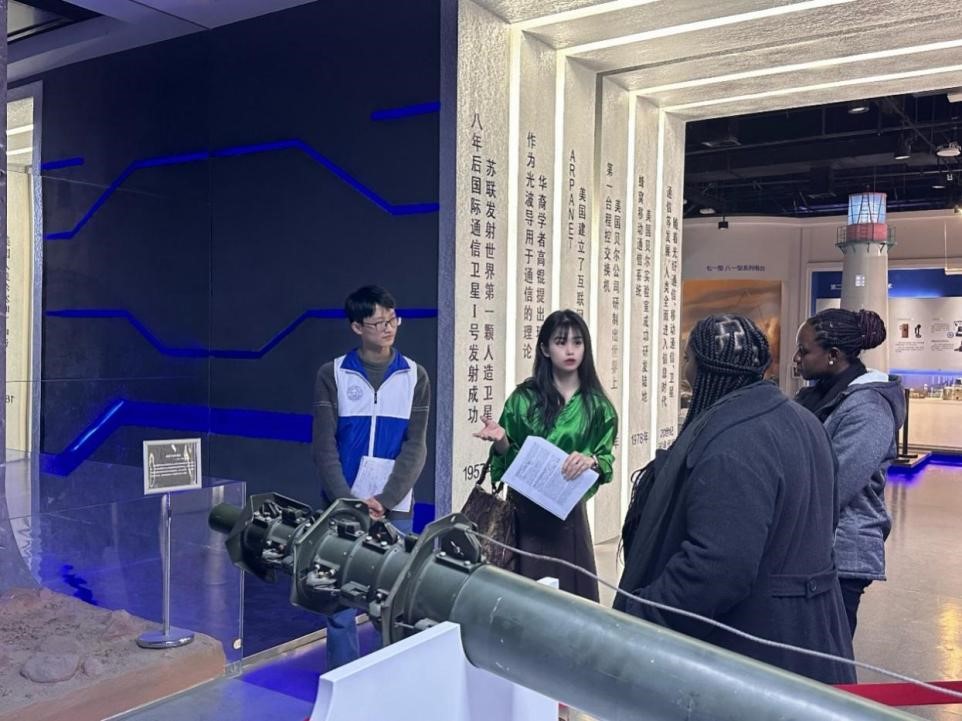 在校史馆,我院英文讲解员分“校史钩沉”和“今日华章”两个篇章详细介绍了西电始终与中国革命史和发展史紧紧相连的红色办学历史。外宾表示,看着校史馆内丰富的资料,仿佛穿越历史,重温了西电艰辛的创校历程和一代代西电人坚守初心、为国奉献的光辉岁月。