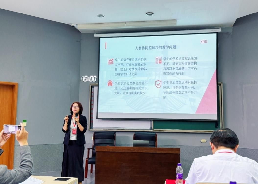 在分论坛环节,任利华做了题为“人智协同教学新范式:夯实思政育人根基,提升学术交流能力”的主题报告,系统介绍了我院面向博士生开设的“学术交流英语”课程建设经验。该课程通过“分级分模块”教学体系、“中外教协作+人智协同”创新模式,依托“西电智课”、“学堂在线”双平台构建多模态实践教学空间,实现规模化与个性化教学的有机平衡。课程实施三年来,已形成“教学研”一体化发展格局,并开发了特色教材、慕课及教学资源库,学生学术交流能力得到显著提升,育人成效获广泛认可。永利集团304将持续深化AI赋能的外语教学改革,推动具有校本特色的研究生英语课程体系建设。