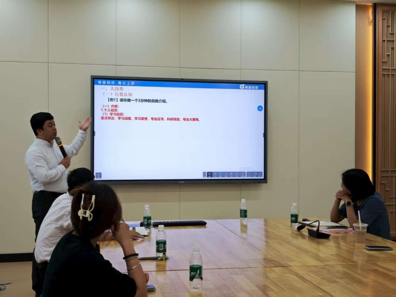 学院特别邀请青藤教育董事会成员王宇翔老师开展职场面试专项指导,内容涵盖着装礼仪、常见面试形式、面试评价标准及面试流程等方面。为强化学习效果,王老师还组织毕业生围绕典型面试题目开展实战演练,助力同学们将理论知识转化为实际应试能力。