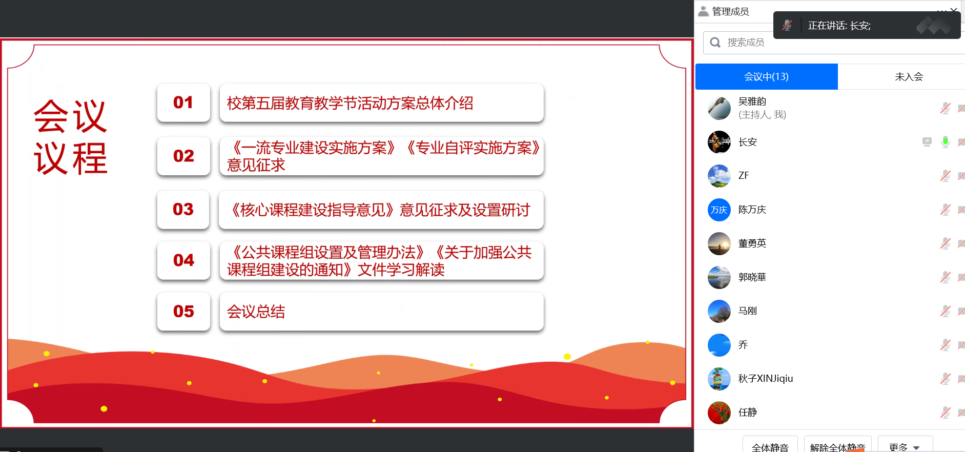 参会人员围绕核心课程认定标准、教师教学创新展示、公共课程组阶段性建设目标、虚拟教研室等议题展开热烈讨论。