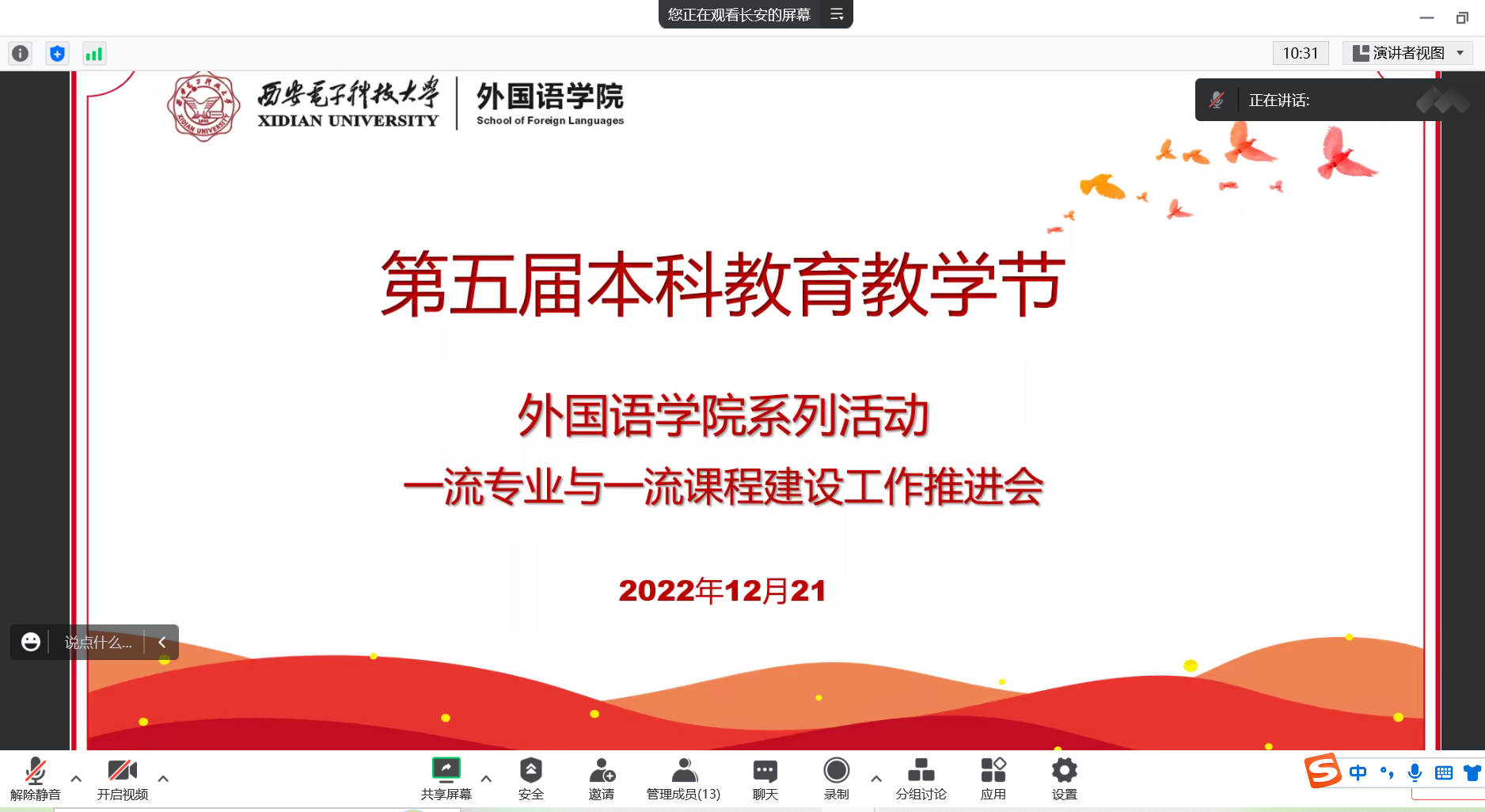 会议最后,马刚就第五届教育教学节活动和近期工作提出三点要求。一是要在各系部广泛征集骨干教师意见,基于培养方案,结合当前专业学科发展形势、国家课程标准、课程指南及学校特色,梳理核心课程,建设高质量、有支撑的课程体系。二是要以英语专业作为国家级一流本科专业建设点为契机,依托学校理工科资源,扎实推进我院特色英语专业建设,加强校际间交流,实地调研,取长补短,凝练特色,不断优化专业建设方案。三是要求大学英语公共课程组统分结合,形成合力,进一步优化落实英语课程对标专业需求、将学术英语专业类竞赛纳入学校竞赛体系。课程组负责人和系部主任要充分发挥头雁引领作用,将教学教研转化为教学成果,在教改项目、高水平教改论文等方面取得新的突破。