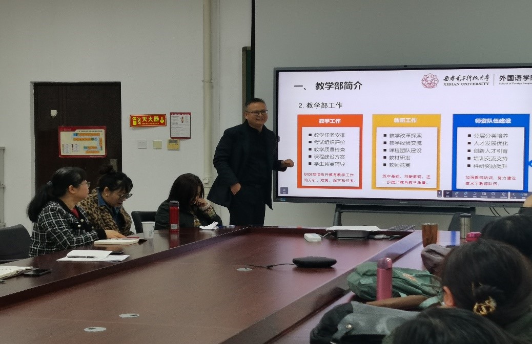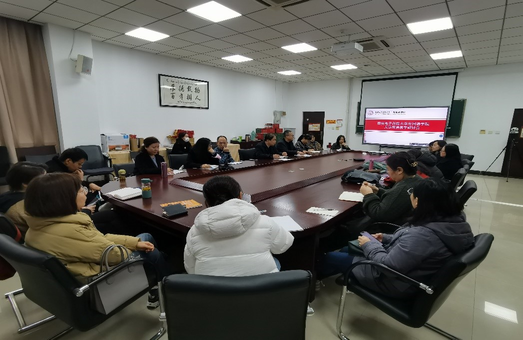 副院长李长安首先发言,鼓励参会教师提出并分析在大学英语课程教、学、管、评环节存在的问题、解决的途径。随后,课程负责人陈万庆汇报了大学英语课程教学改革的发展、取得的成效和面临的挑战。副院长曹志宏提出大学英语着力挖掘课程思政和思辨,给与学生人文关怀,旨在培养未来人才的综合素养,应下大力气搞好教学过程评估。