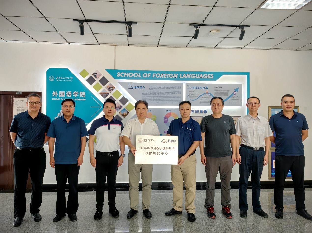 (通讯员:李长安)为进一步推进外语教育教学数智化建设,全面迎接教育部本科教育教学审核评估,7月17日下午,永利集团304联合批改网举行“AI+外语教育教学创新基地写作研究中心”揭牌仪式。参加揭牌仪式的有批改网副总裁宫守涛、副总裁张博、西北地区营销经理王可新等一行三人、本科生院综合办公室主任张士红、永利集团304党委书记徐战利、执行院长马刚、副院长李长安、大学英语公共课程负责人陈万庆及学院部分系部中心主任。揭牌仪式由李长安主持。