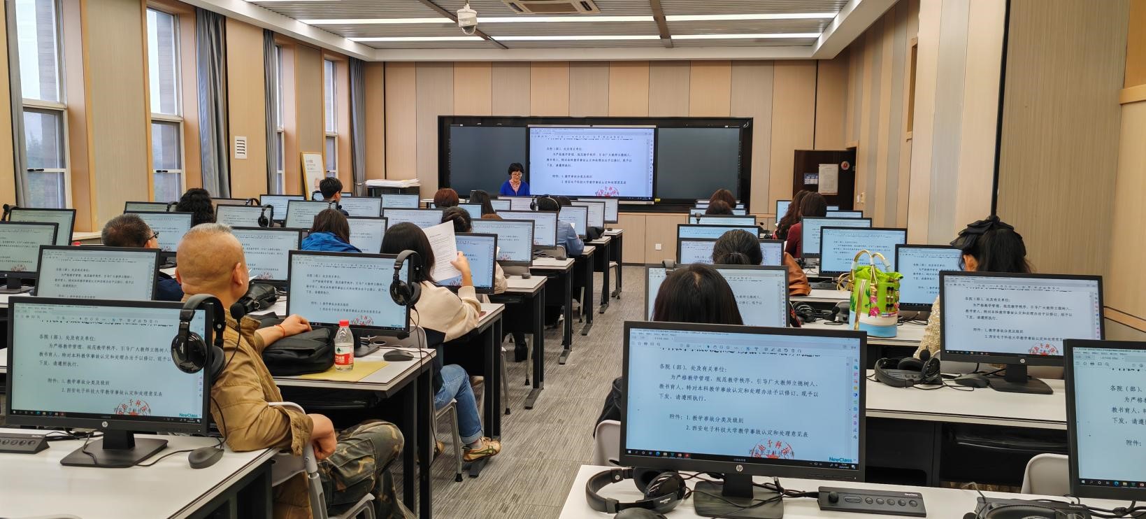 秦枫首先强调了本次教育教学审核评估对学校及学院的重要性。为进一步规范课堂教学秩序,严肃课堂教学纪律,提高课堂教学效果和质量,树立良好的教风学风,加强本科教学内涵建设,秦枫带领全体英语教师认真学习了《304永利集团本科教学事故认定和处理办法(2023版)》。教师们纷纷表示要课堂上要遵守政治纪律,站稳政治立场,认真履行课堂管理第一责任人职责,严格实施课堂考勤管理,课堂签到,以高要求高标准迎接教育教学审核评估。