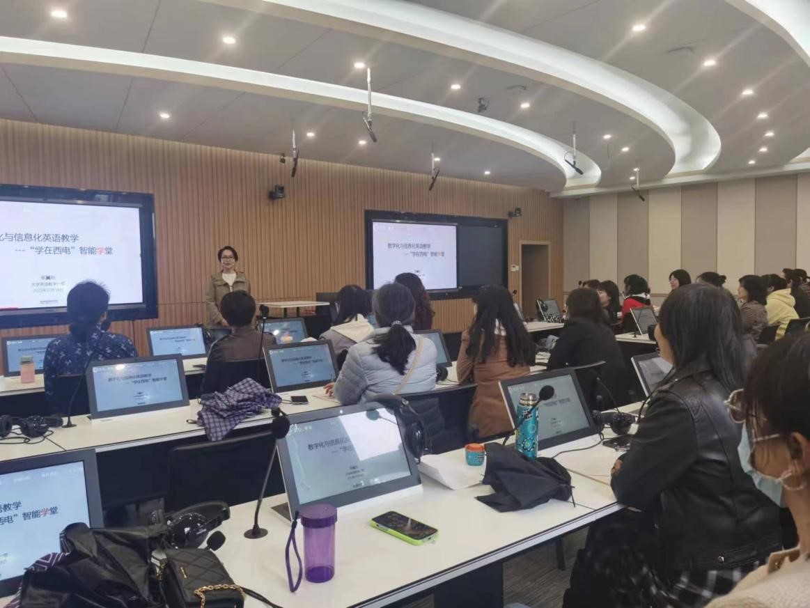(通讯员:冯延琴)10月18日,大学英语教学一部在信远II-502举办数字化与信息化英语教学——“学在西电”智能学堂教学研讨会。会议旨在利用数字化与信息化技术手段助力优化大学英语教学设计、实施与考核反馈等。研讨会由大学英语教学一部主任陈争峰主持,副主任辛冀秋主讲,系部全体任课教师参加。