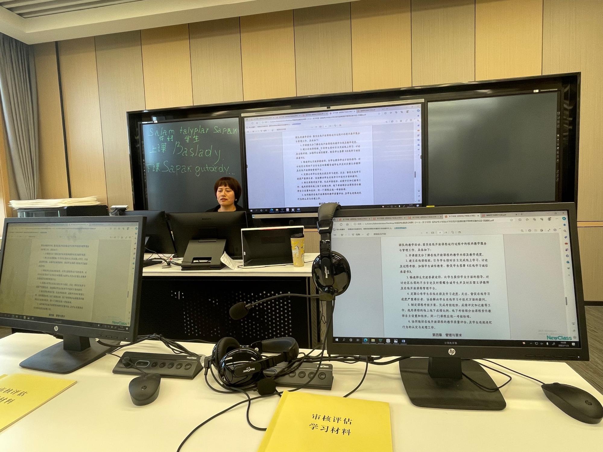 接着,翻译系主任仝文宁传达了学校及学院对新一轮教育教学审核评估的指导精神。她强调,此轮审核评估突出立德树人的指导思想,强化学生中心、产出导向、持续改进。仝文宁接着带领大家认真学习了《审核评估学习材料》,以熟悉此次评估的流程和内容;并梳理了教师应知应会的一些具体问题,包括教学大纲修订的具体过程、如何确定毕业选题等问题,号召大家全面准备,积极配合,顺利完成此次教育教学审核评估,真正促进学校“以评促见、以评促教、以评促管、以评促强”。