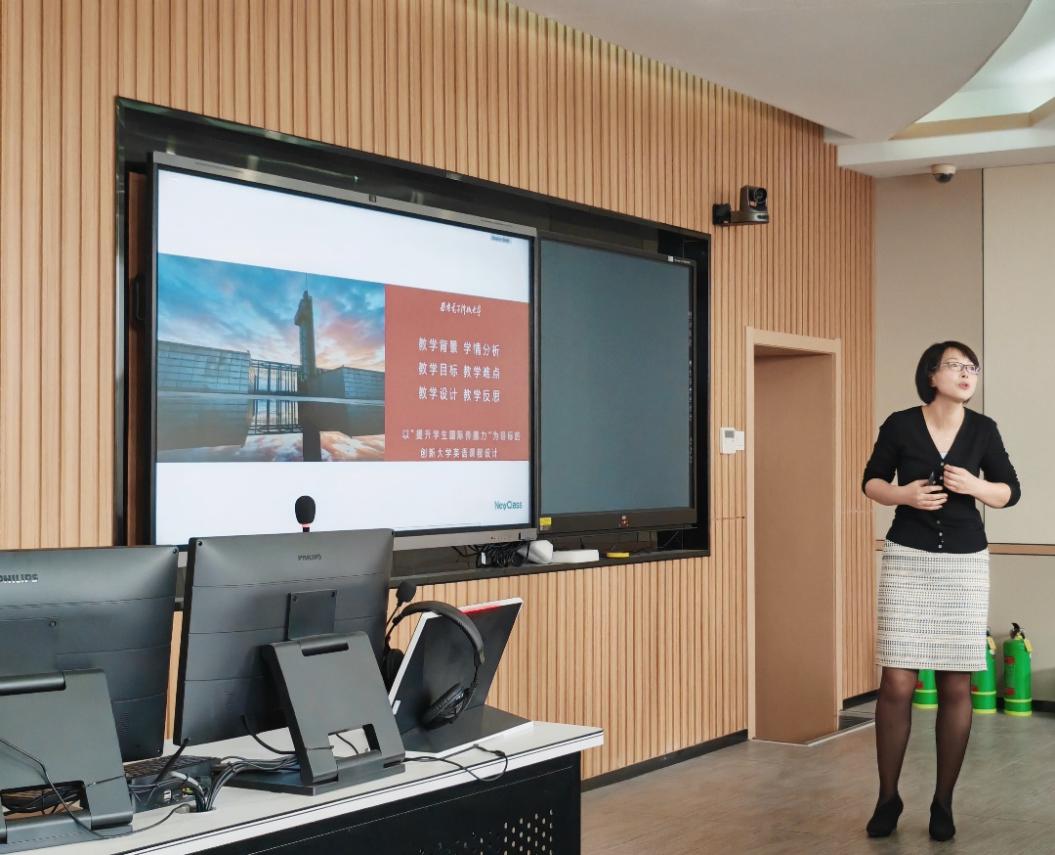 接着,张艳以2023级拔尖班《创新大学英语》课程实践为基础,探讨了如何建设创新大学英语课程思政教学体系,将习近平新时代中国特色社会主义思想全过程与教学有机融合,实现价值塑造、知识传授和能力培养三位一体的人才培养目标。她分享了大学英语教师在制定教学目标、实施计划和评价体系过程中如何加强学生的国际传播意识和传播技能,将提升国际传播能力作为课堂英语教学的重点,教会学生用国际表达讲述中国之路、中国之治、中国之理。张艳用大量课堂实践图片和视频资源展示了我校拔尖人才培养体系中学生国际传播力培养的最新成果。