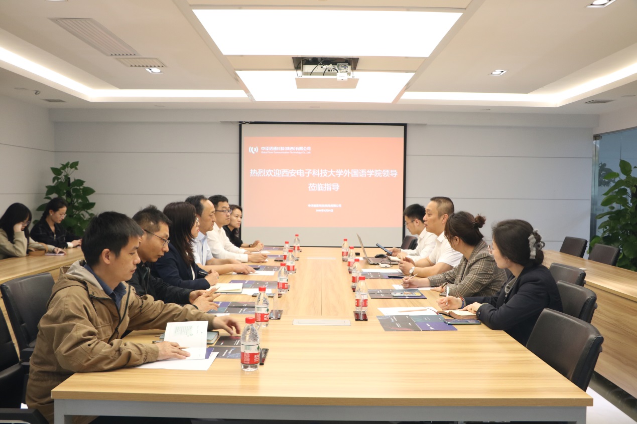 座谈会上,徐战利详细介绍了学院的基本情况、学科优势以及人才培养特点等,希望与中译语通在共同建设好实习基地的基础上,进一步深化在区域国别学研究、人才培养等领域的合作。陈会林详细介绍了西电在区域国别学研究方面的布局和规划,表达了西电利用成熟数据模型、中译语通利用丰富语料库进行强强联合、优势互补的合作愿景。程静、李书卿具体阐述了区域国别学研究方向、设想、难点和需求。中译语通张欣晨、企业创新应用事业群总监任飞积极回应,详细介绍了公司在区域国别学研究领域的战略布局和当前进展。双方探讨了未来切实可行的合作项目和对接模式,均表示将进一步加强校企合作,拓宽合作领域,实现共同发展。
