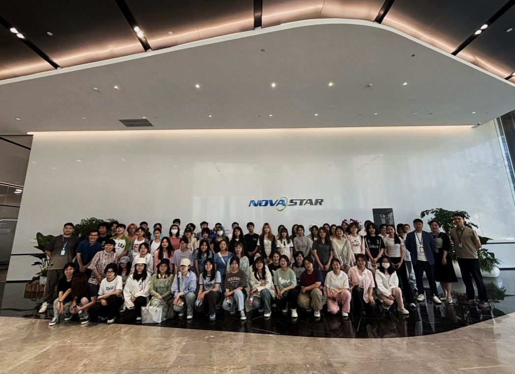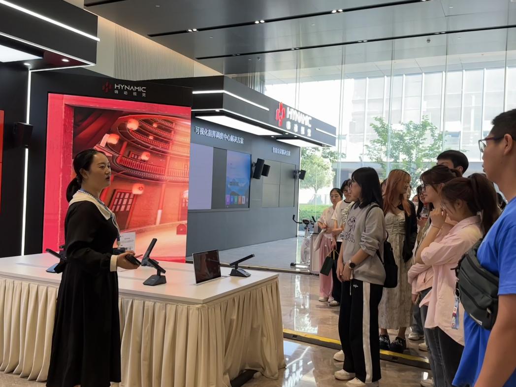 参观团队在诺瓦星云科技公司人力资源部门老师的带领下,参观科技产品陈列厅。老师们向同学们介绍了公司的主要产品,如xR虚拟拍摄主控和接收卡,并展示了智能会议和可视化指挥调度解决方案。