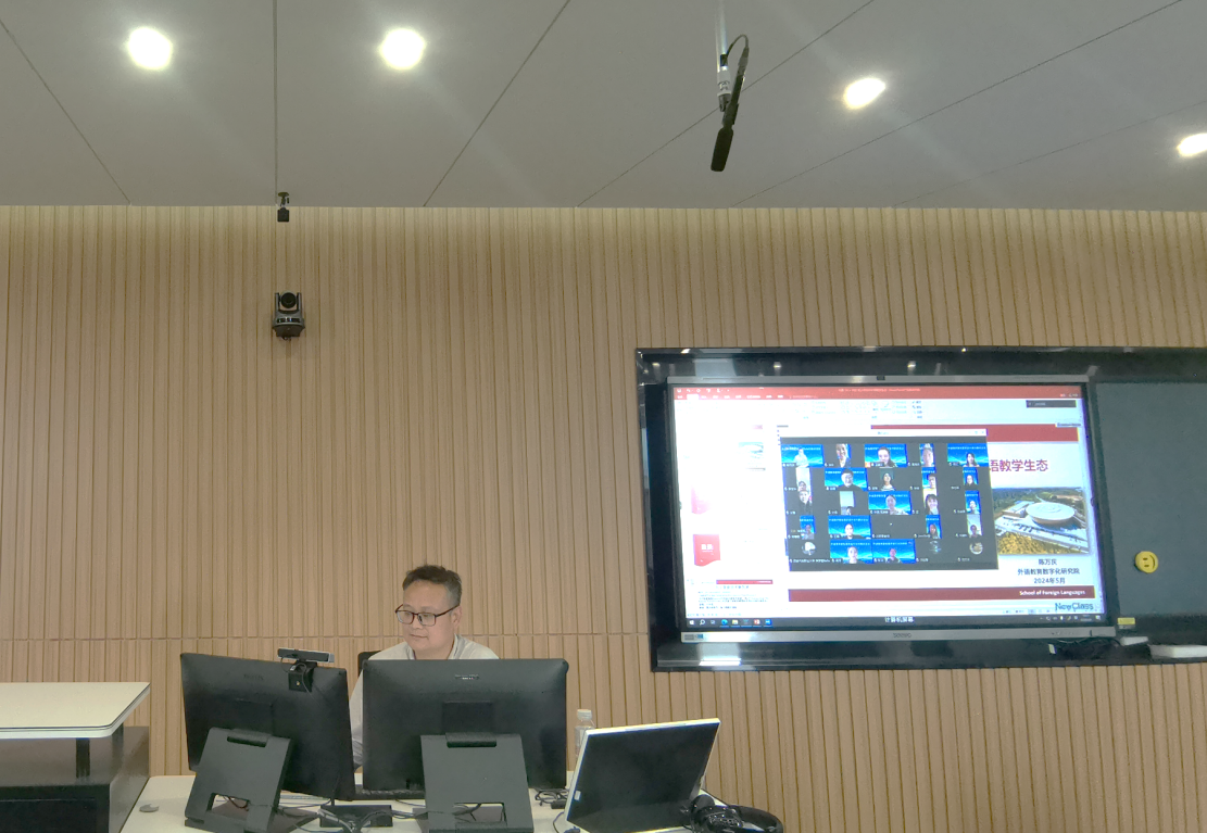 (通讯员:张艳 任静)为深入贯彻党的二十大关于“推进教育数字化,塑造教育发展新优势”的精神,5 月 9 日下午,西电永利集团304大英教学部与暨南大学永利集团304大英教学部在信远楼II-502举行联合教学研讨活动。西电大英课程负责人陈万庆副教授作了“构建‘AI+师生’人机协作式外语教学生态”的主题报告,教育部大学英语外语教学指导委员副主任委员、中国高教学会数字化课程资源分会秘书长、教育部首批“大学英语课程群虚拟教研室”负责人、暨南大学永利集团304赵雯教授对报告进行了点评和讨论。此次联合教研活动线上线下同步进行,全国高校 70多名外语教师线上聆听了报告并参与讨论。