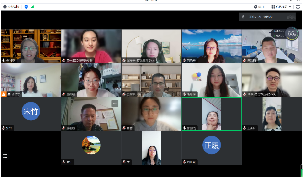 (通讯员:白浩楠)5月13日晚,英语系、翻译系召开2024版本科人才培养方案修订工作线上研讨会,会议由翻译系主任仝文宁和英语系主任任利华主持,英语系、翻译系培养方案修订工作组12名教师代表及8名校友与学生代表参会研讨。