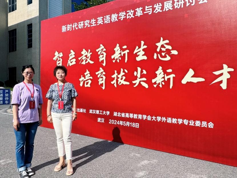 (通讯员:刘一鸣)为全面贯彻党的二十大精神和全国研究生教育会议精神,深入推进教育数字化战略行动,建设高质量研究生英语教育体系,外语教学与研究出版社和武汉理工大学于2024年5月18日在武汉举办了新时代研究生英语教学改革与发展研讨会。会议主题为“智启教育新生态 培育拔尖新人才”。我院研究生英语教学部主任郎曼、副主任刘一鸣参加了此次研讨会。