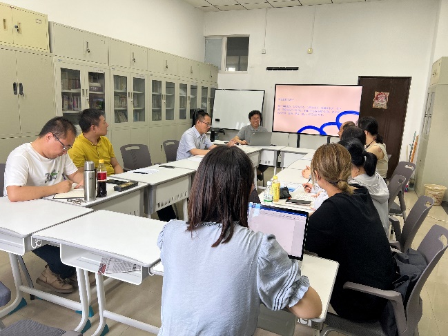讲座开始,齐明皓首先从培养目标、课程设置等方面,分享了太原科技大学文工交叉融合在教学实践上的经验,以“日本工业技术史”“科技日语”“科技文献日汉互译”三门课程为例,详细介绍了课程设计思路及实施过程,并总结了实施过程中遇到的难点和启示。其后,齐教授分享了文工交叉融合在学生竞赛、就业方面的尝试与应用效果。通过开展以赛驱动“日语+工科”实践项目、搭建文工交叉平台等措施,取得了显著成效。讲座最后,全体参会教师就文工交叉融合实践过程中可能遇到的问题等与齐教授进行了深入交流讨论。