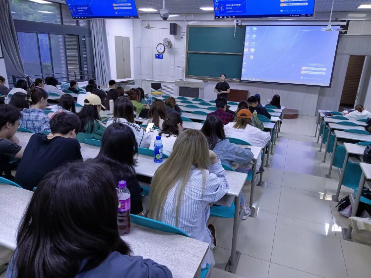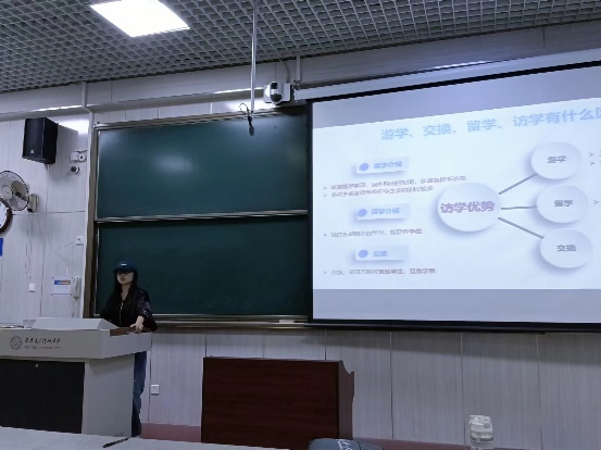 负责日本交换的Zimmy老师向大家介绍了早稻田大学和东京大学的海外访学项目。她为同学们区分了游学、访学、交换、留学的概念,并从师资力量、日程安排、项目内容等方面对日本访学项目进行了介绍,并鼓励日语专业的同学积极参与。