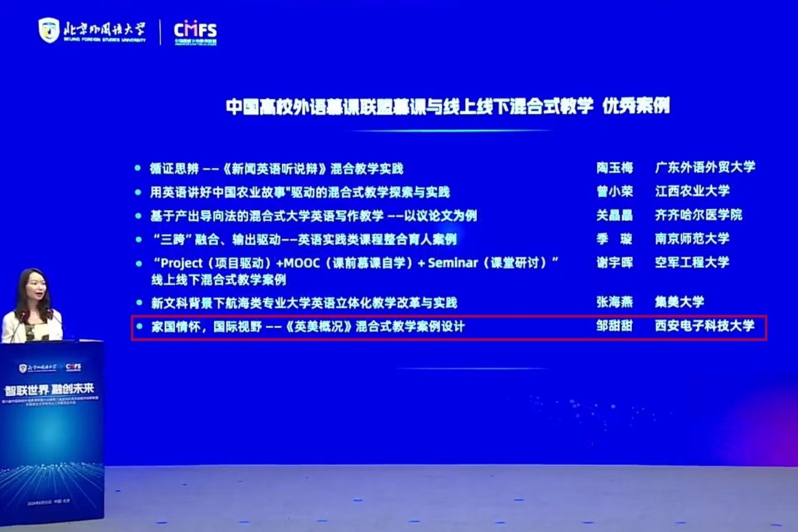 会上公布了“2023年度中国高校外语慕课联盟慕课与线上线下混合式教学优秀案例”,我校永利集团304邹甜甜副教授团队的教学案例“家国情怀,国际视野——《英美概况》混合式教学案例设计”荣膺其中,充分彰显了学院在推进慕课建设与应用、开展混合式教学研究、提升教师数字素养等方面取得的卓越成效。今后学院将继续为外语教学数智化创新提供强大支持,积极探索数字技术对高等教育未来变革的引领作用,致力于新时代背景下创新外语教学模式、提升混合式课程建设的整体水平。