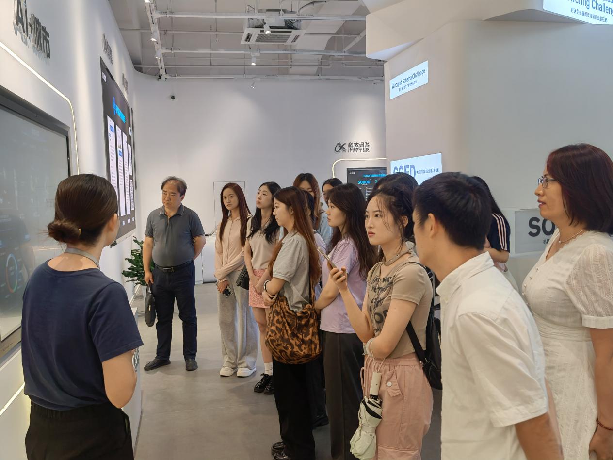 在科大讯飞工作人员带领下,学院师生参观了公司展馆,了解并体验了公司多样化智能产品。讲解人员详细介绍了科大讯飞人工智能技术在教育、医疗、城市服务等多领域的深度融合案例,并展示了AIUI双全语音交互系统等具体应用。