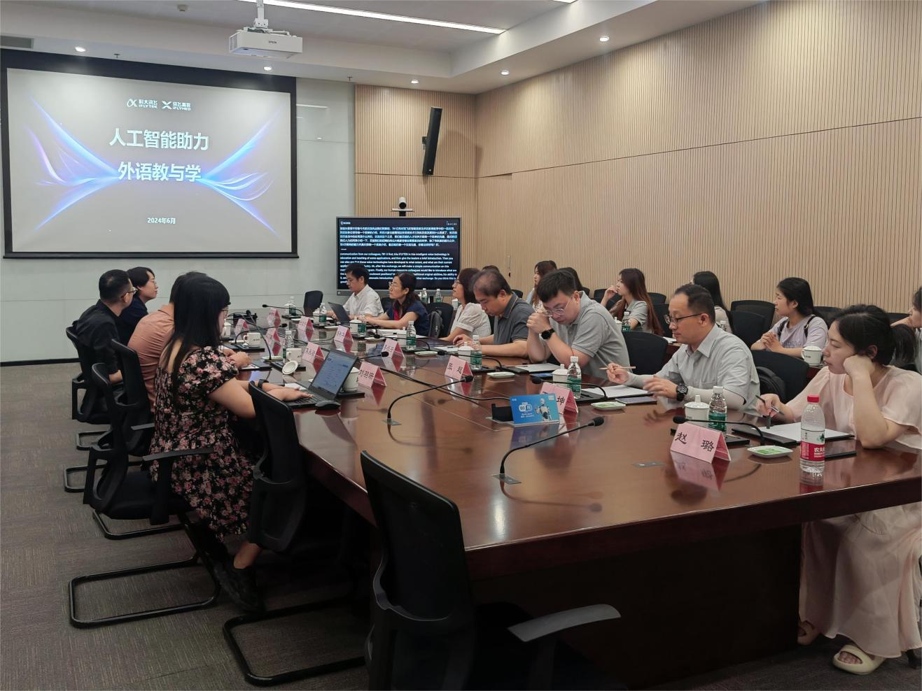 参观结束后,科大讯飞丝路总部高教行业总监焦永禄、陕晋高教负责人祁高鹏等企业代表与师生进行了座谈交流,并对资源工程师等职位的工作内容及所需能力进行介绍。双方就人工智能助力外语教与学、外语专业培养方案修订和外语人才能力发展等主题进行了深入探讨。