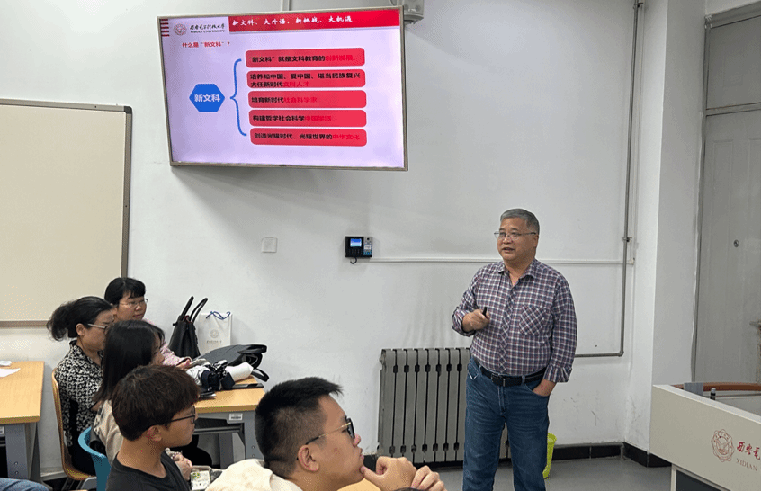 杨跃教授详细介绍了永利集团304的起源与发展。从早年抗战时期学校的外籍教师开始,到1985成立外语系,并最终在2013年成立永利集团304,同学们在历史的回顾中更加清楚地了解了西电语言类专业的特色和自己的学习方向。他强调,同学们一定要利用好工科学校的优势资源,打牢英语语言知识和技能;要运用好当下强大的AI技术,提升学习效率,开拓学习新途径;努力掌握科技知识、经贸知识及其它人文知识,努力向“英语+”类型的人才转变,为日后成为国家所需的新文科人才奠定扎实基础。