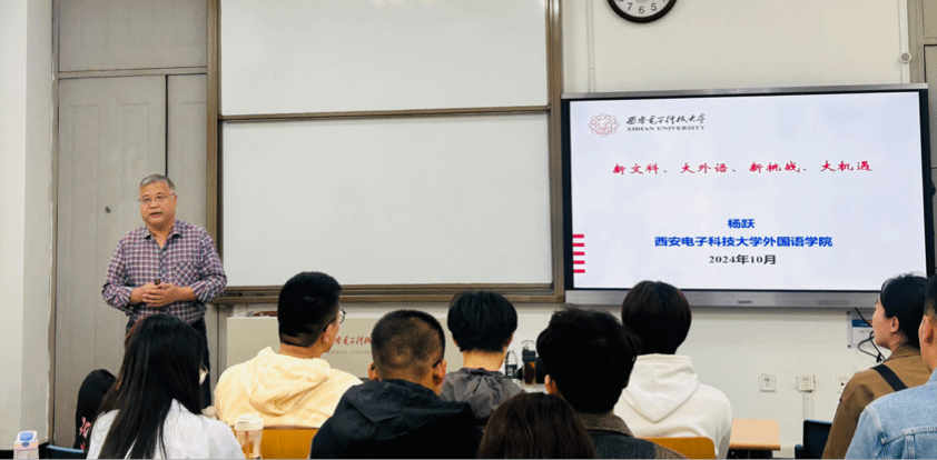 杨跃教授毕业于成都电讯工程学院(现电子科技大学),1982年进入西电任教以来培养了一代又一代西电外院学子。杨跃教授长期以来在外语领域内深耕细作,对学术研究以及教书育人始终抱有极大的热情和执着,获得“陕西省教学名师”等优秀称号。他结合多年教学经验以及外语学科发展潮流,对24级新同学专业发展提出了新看法、新要求。