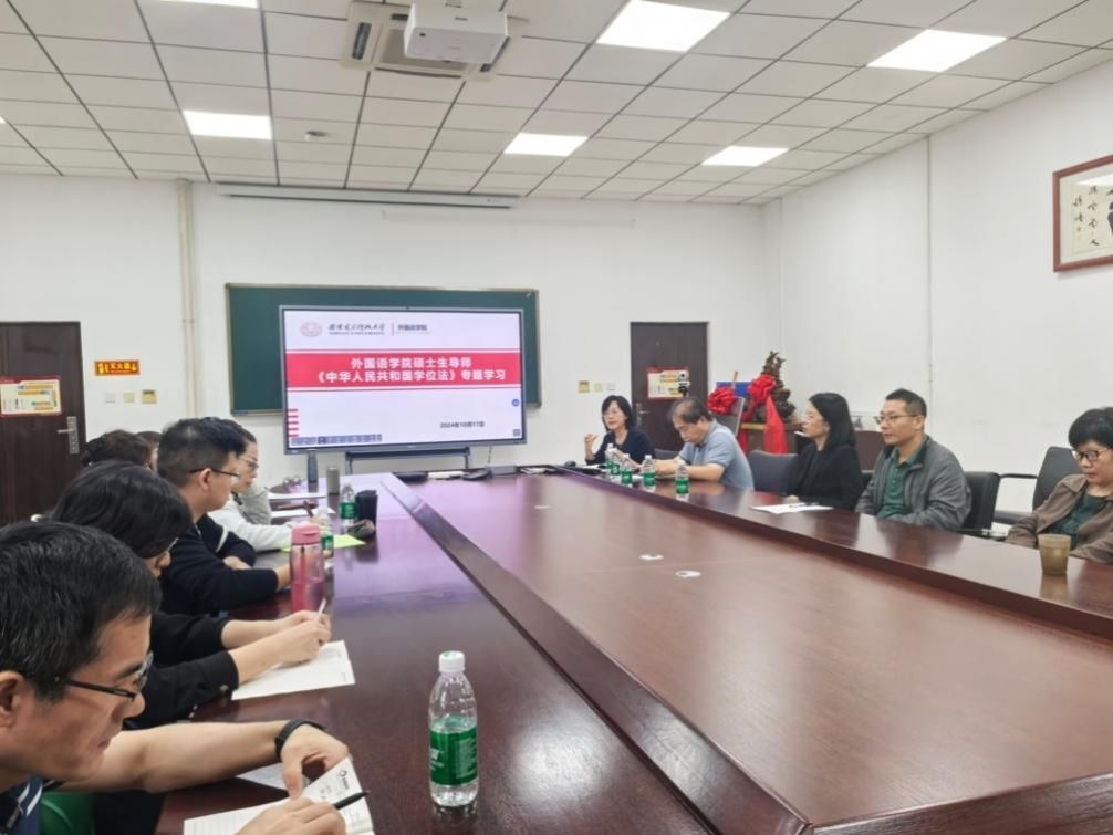 专题学习结束后,主管领导对学院近期研究生教育教学和就业情况作了通报,强调了教学纪律和导师职责。她鼓励大家借助学习《学位法》的机会,进一步规范学院的研究生培养过程。接着,MTI方向导师就培养方案修订中的一些问题展开了深入讨论。导师们一致认为,《学位法》的出台是新时代教育法治建设的重要里程碑,不仅为学位工作提供了健全的法律依据,也为高层次、创新型人才的培养奠定了坚实的法治基础。多位导师表示,教学、研究团队和各专业导师应加强沟通与合作,以落实《学位法》为契机,积极探索优化学生培养与学科发展的新路径,共同推动我院研究生教育的高质量发展。