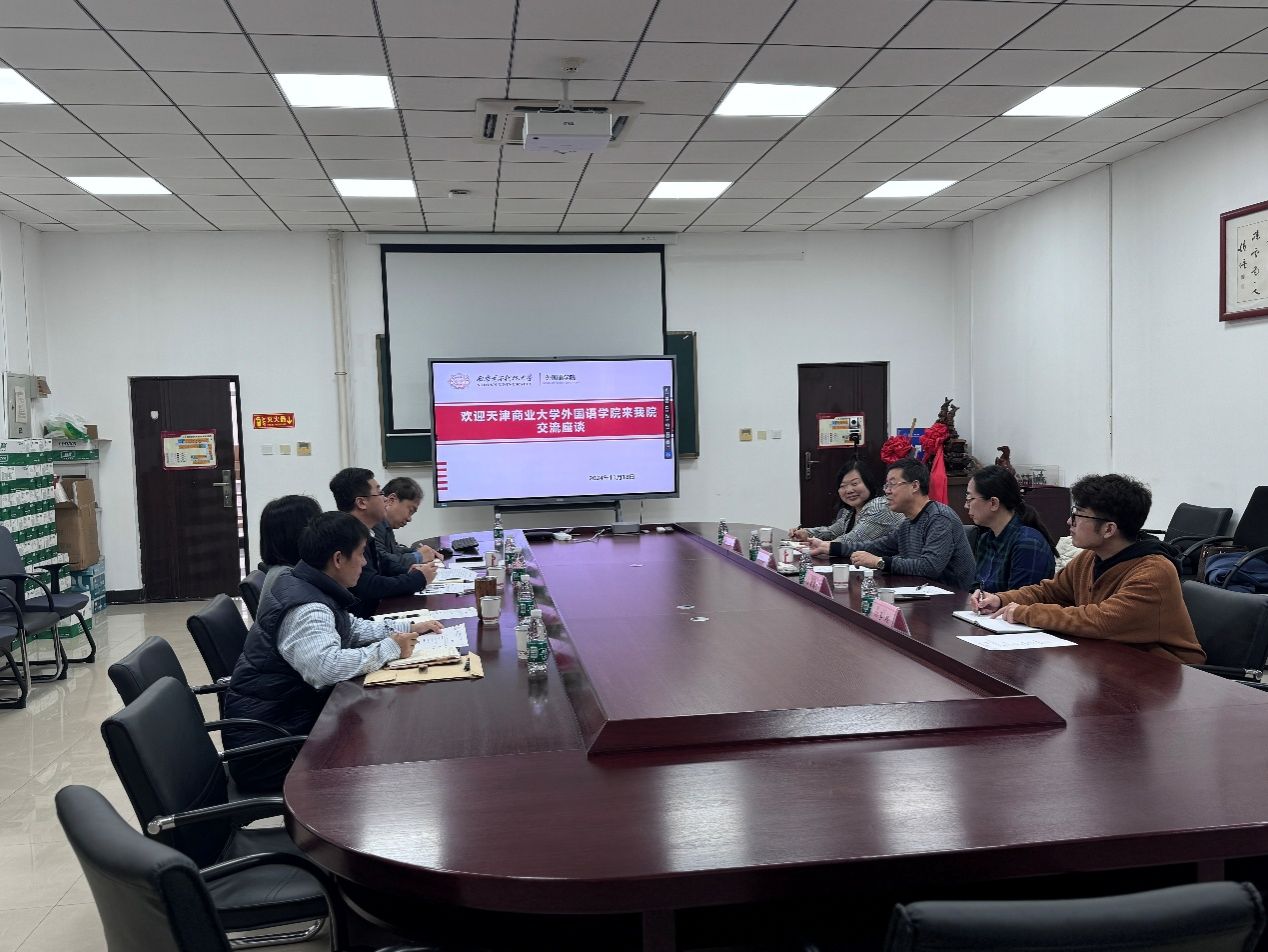陈会林对天津商业大学永利集团304一行表示热烈欢迎。他简要介绍了学校和学院的发展历程,围绕双方共同关注的外语专业建设、人才培养、学生工作等话题展开分享。他提到,学院始终紧密围绕国家战略需求,长期为外语领域输送大量优秀人才。学院聚焦人工智能、大数据与外语学科融合,打造以科技英语为特色的学科模式,强化与国际知名高校的合作,推动外语学科与本校优势学科交叉发展,助力学科迈向新台阶。